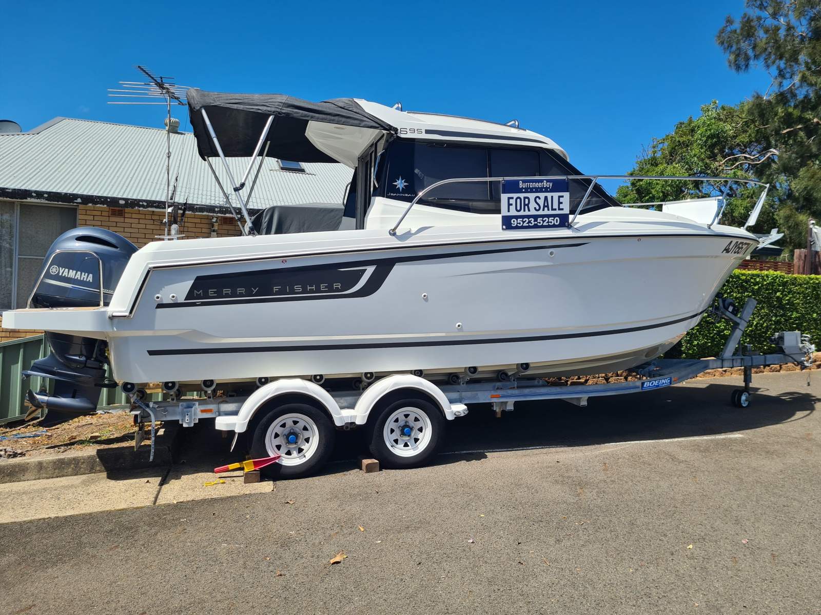 Merry Fisher 695, perfect weekender 2019 model, Yamaha 175hp only 535 hours, service history, Garmin Echomap 9 inch GPS/Fish finder, Fusion RA55 Bluetooth stereo, Elect windlass, sunroof, 40 litre fridge, Sink, Marine toilet with holding tank, V berth plus convert dinette, full curtains, Rear sun awning, front sun pad, Roof racks for your SUP, s, aft deck wash, rear table converts to day bed. On a Boeing tandem trailer towable by most large family vehicles.