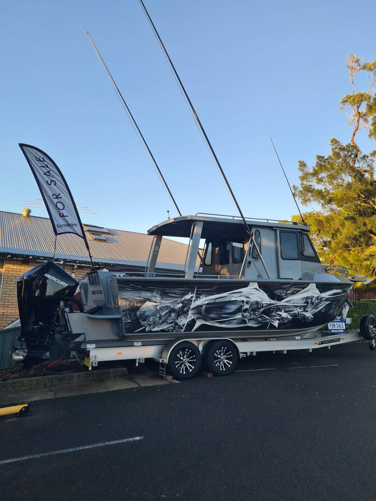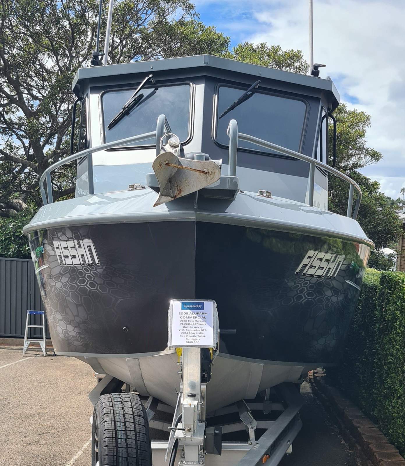 2025 repaint, wrap, new bow rail, Outriggers, window tint, roof lining, and a 2024 top of the line Alloy trailer added.