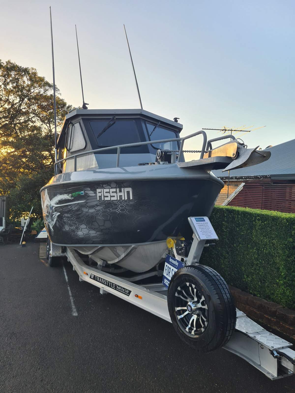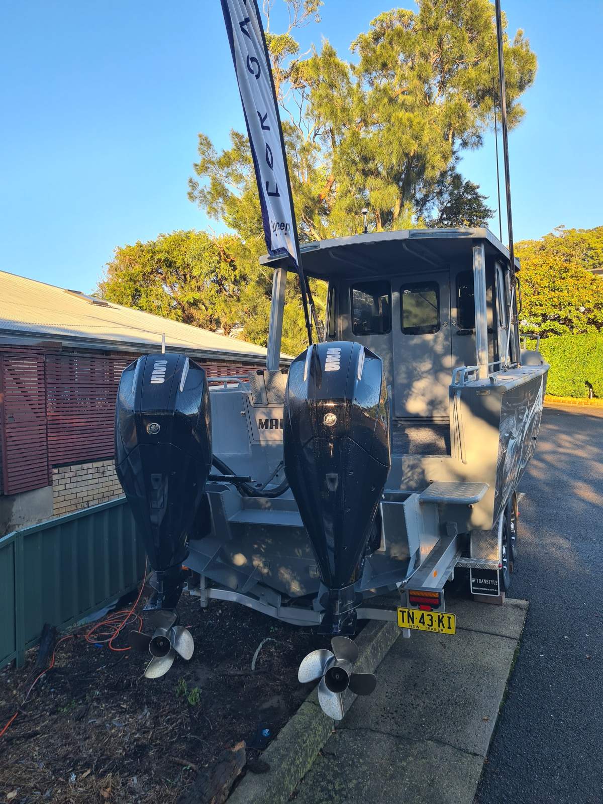 Will cruise at 35 knots and beat the weather at 43 knots, twin 350 litre fuel tanks.